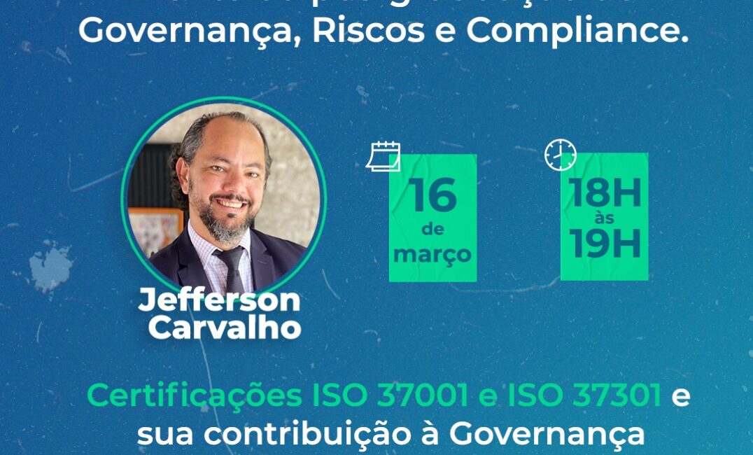 Na próxima quarta-feira 16 de março, às 18h, o professor Jefferson Carvalho estará na Faculdade CEDIN – Centro de Estudos em Direito e Negócios, falando sobre as certificações ISO 37001 Antissuborno e ISO 37301 Compliance e sua contribuição à governança. Um bate-papo objetivo, pragmático e com foco em solução, como esperado pelo mercado.