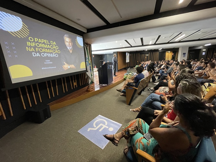 No fechamento da semana, houve um bate-papo do jornalista e psicólogo Fábio William com alunos da UnDF sobre o papel da Informação na formação de opinião. “Conversar com jovens sobre a importância de acompanhar as ações do governo é de extrema importância para a formação de pessoas conscientes”, pontuou o palestrante.