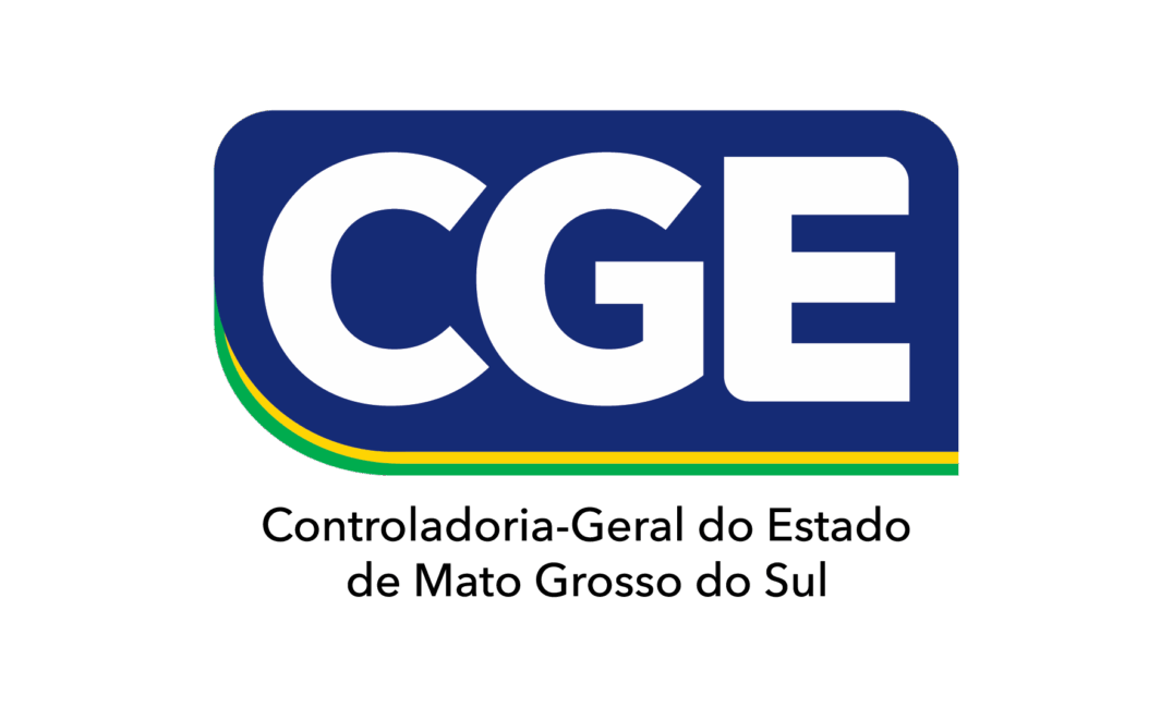 No caso, a da Controladoria-Geral de Mato Grosso do Sul é composta pela abreviação CGE em caixa alta, com a fonte desenvolvida para uso próprio e traços que representam duas das cores presentes no brasão do Estado e fundo azul, podendo ser utilizada nas variações vertical, horizontal e retangular.