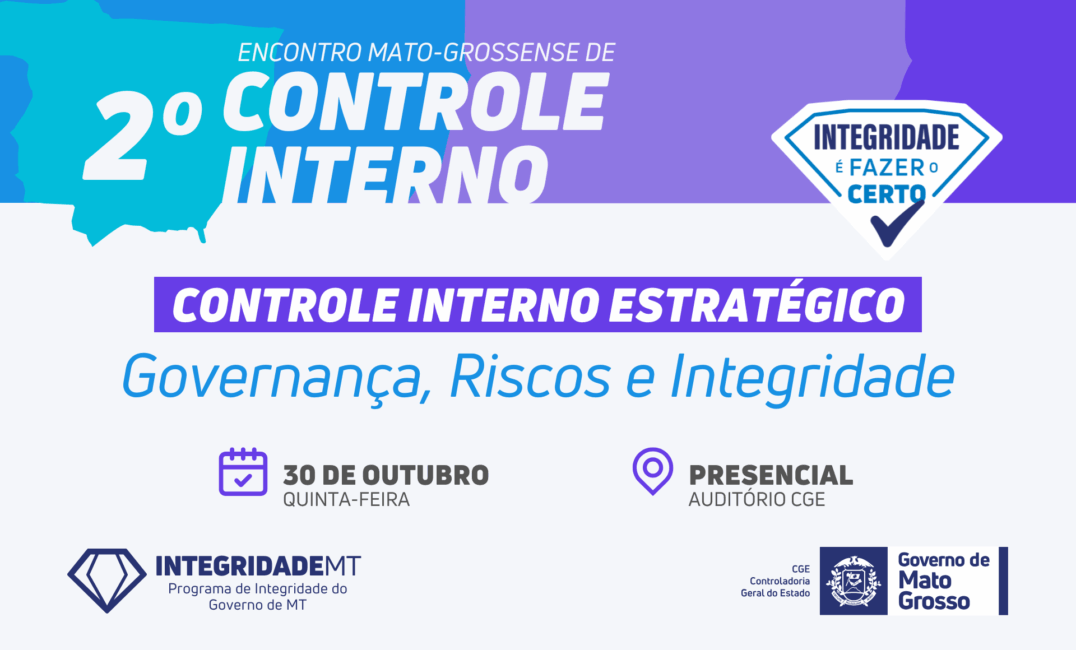 Controladoria Geral do Estado de Mato Grosso está com as inscrições abertas para o 2º Encontro Mato-grossense de Controle Interno, que será realizado no dia 30 de outubro, das 8h às 17h30, em Cuiabá. Nesta edição, o evento terá como tema “Controle Interno Estratégico: Governança, Riscos e Integridade” e reunirá servidores estaduais e municipais, auditores, controladores e especialistas de todo o país para discutir os avanços, desafios e inovações na área de controle interno da administração pública.