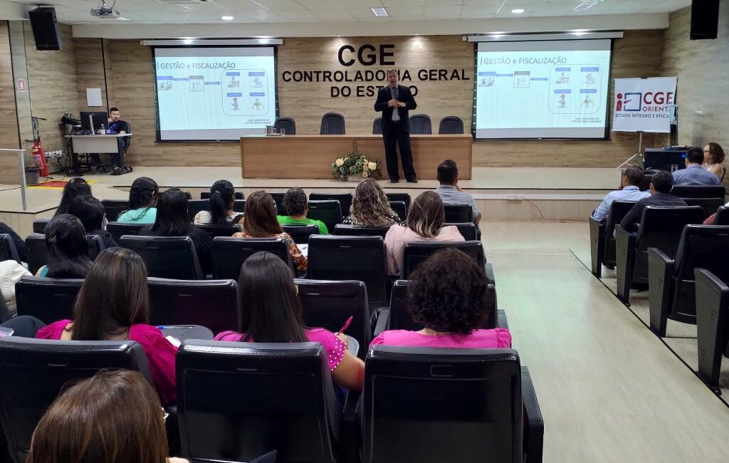 A capacitação foi realizada presencialmente no auditório da CGE e online pela plataforma Google Meet. Acesse AQUI a apresentação.