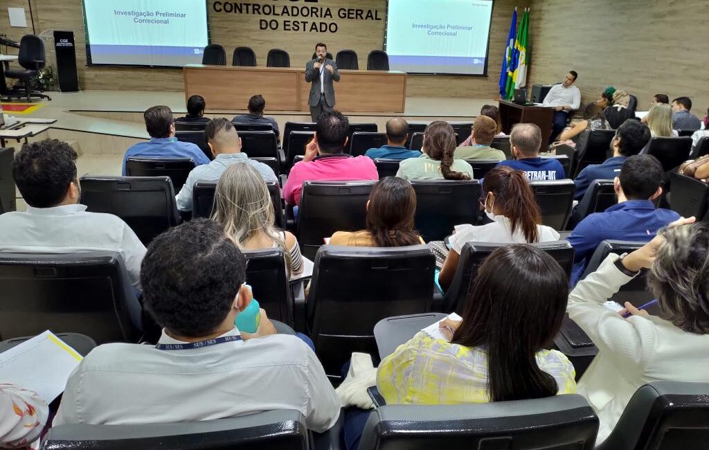 A Controladoria Geral do Estado (CGE-MT), por meio da Secretaria Adjunta de Corregedoria Geral, realizou, na última semana, curso para aprimorar o conhecimento dos servidores das Unidades Setoriais de Correição do Poder Executivo Estadual sobre investigação preliminar. A capacitação integrou a terceira edição de 2022 do “Programa CGE ORIENTA – Estado Íntegro e Eficaz” e foi realizada de forma presencial no auditório da Controladoria, no Centro Político Administrativo, em Cuiabá.