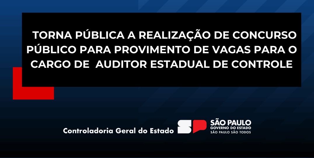 A Controladoria Geral do Estado de São Paulo (CGE SP) divulgou, nesta quarta-feira (03/09), o Edital CGE Nº 03/2025 do concurso público para 200 cargos de Auditor Estadual de Controle, carreira específica do órgão de controle interno paulista, criada pelo Lei Complementar nº 1.419, de 27 de dezembro de 2024, com remuneração inicial de R$ 17.850,00.