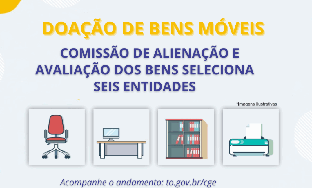 O Governo do Tocantins, por meio da Controladoria-Geral do Estado do Tocantins (CGE-TO) fará a doação de bens patrimoniais considerados inservíveis a seis instituições sem fins lucrativos, sendo: Associação de Pais e Amigos dos Excepcionais de Palmas (Apae), Associação Ação Social Jesus de Nazaré, Associação Cultural de Dança Sombras do Hip Hop, Instituto Brasil Sustentável, Instituto Brasileiro Amigos da Vida e Loja Maçônica Mensageiros da Luz.
