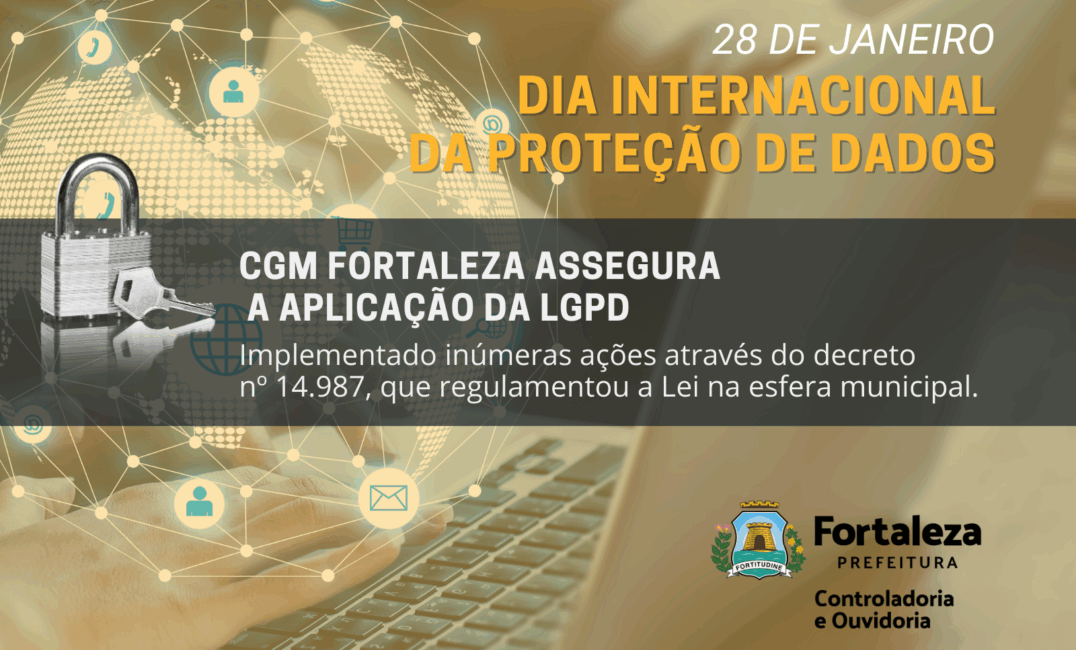 A Prefeitura de Fortaleza, por meio da Controladoria e Ouvidoria Geral do Município (CGM), participa do Webinário LGPD na Administração Pública Municipal, promovido pelo Fórum de Proteção de Dados Pessoais dos Municípios. A atividade, que acontece nesta segunda-feira (30/01), às 10h, de forma on-line, está relacionada ao Dia Internacional de Proteção de Dados, celebrado no dia 28 de janeiro. O encontro vai discutir temas relacionadas à Lei Geral de proteção de Dados Pessoais, como o mapeamento e compartilhamento de dados, bem como o controle e as sanções administrativas.