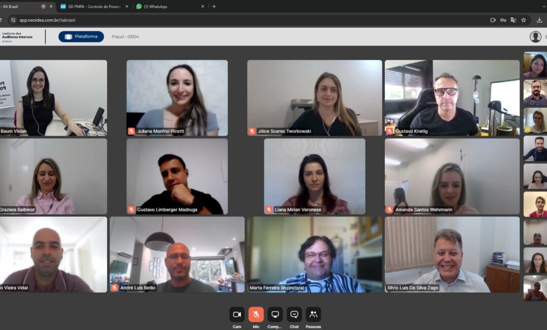 A Controladoria-Geral do Município de Porto Alegre realizou nos dias 3, 4 e 5 de abril/24 curso para identificação, controle e prevenção de fraude contra o erário público. A formação, realizada em parceria com o instituto dos auditores internos (IIA Brasil), ocorreu de forma virtual e foi oferecida a 25 servidores da CGM Porto Alegre.
