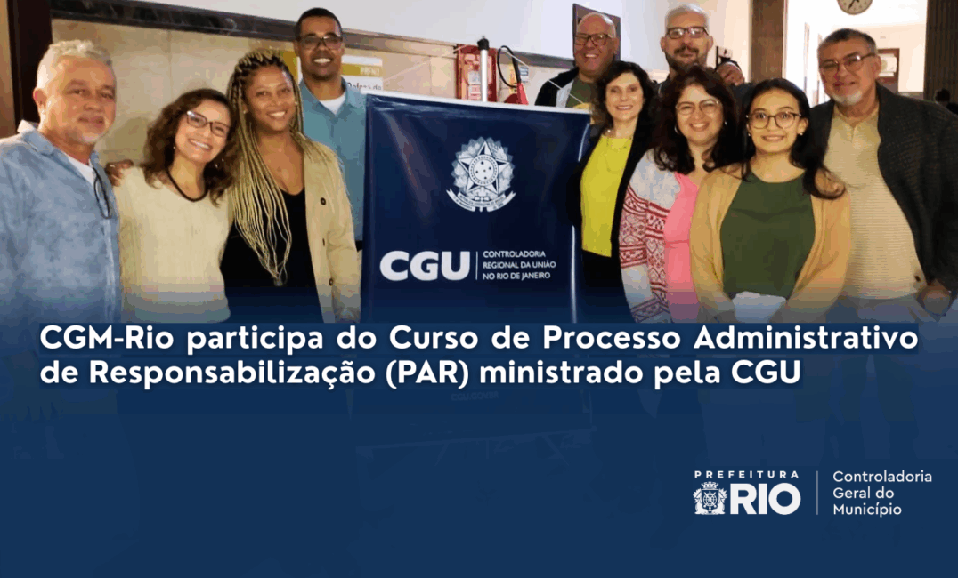 A Controladoria Geral do Município do Rio de Janeiro (CGM-Rio), por meio da Subcontroladoria de Corregedoria (SUBCOR), está participando do Curso de Processo Administrativo de Responsabilização (PAR), realizado no auditório da CGU-RJ entre os dias 26 e 28 de agosto.