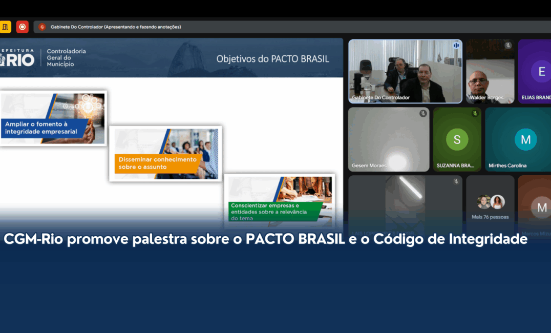 A Controladoria Geral do Município do Rio de Janeiro (CGM-Rio) passou a integrar o grupo de apoiadores do Pacto Brasil pela Integridade Empresarial, iniciativa liderada pela Controladoria-Geral da União (CGU) que busca fortalecer a cultura de integridade no setor privado e promover um ambiente de negócios mais ético e transparente.
