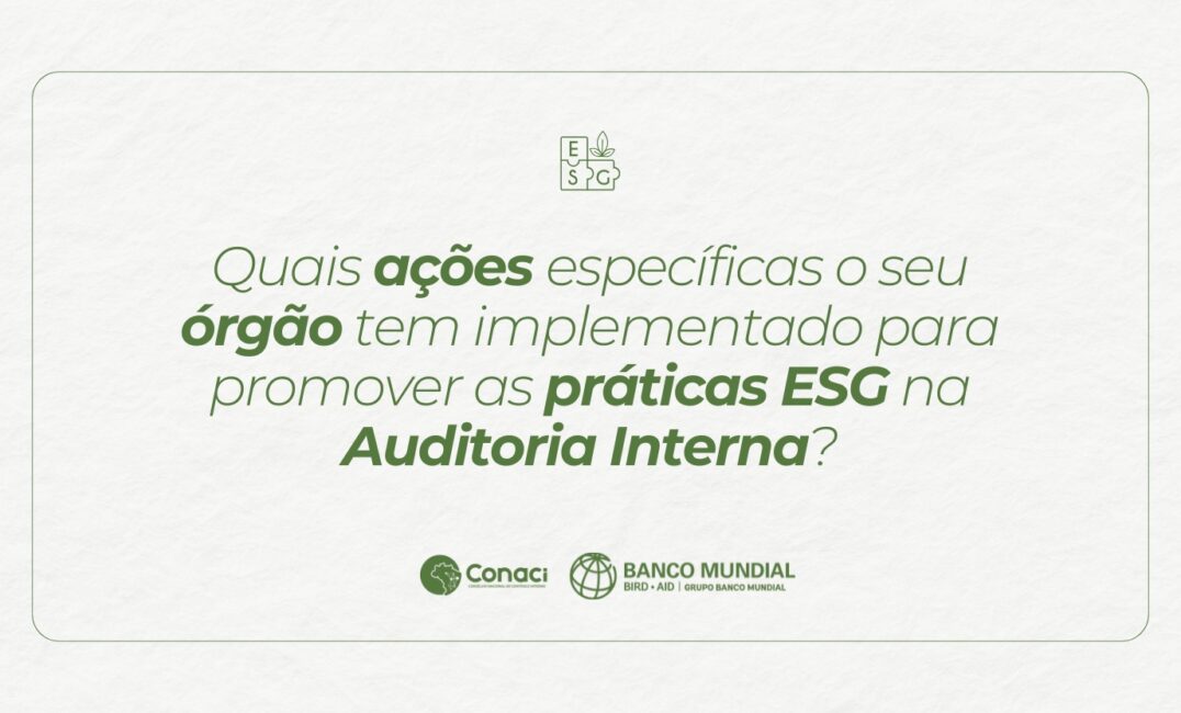 Para saber mais sobre o projeto, acesse a matéria: Projeto ESG na Agenda do Controle Interno: Conaci e Banco Mundial lançam Grupo de Trabalho para contribuir com o avanço dos eixos na gestão pública brasileira | Conaci
