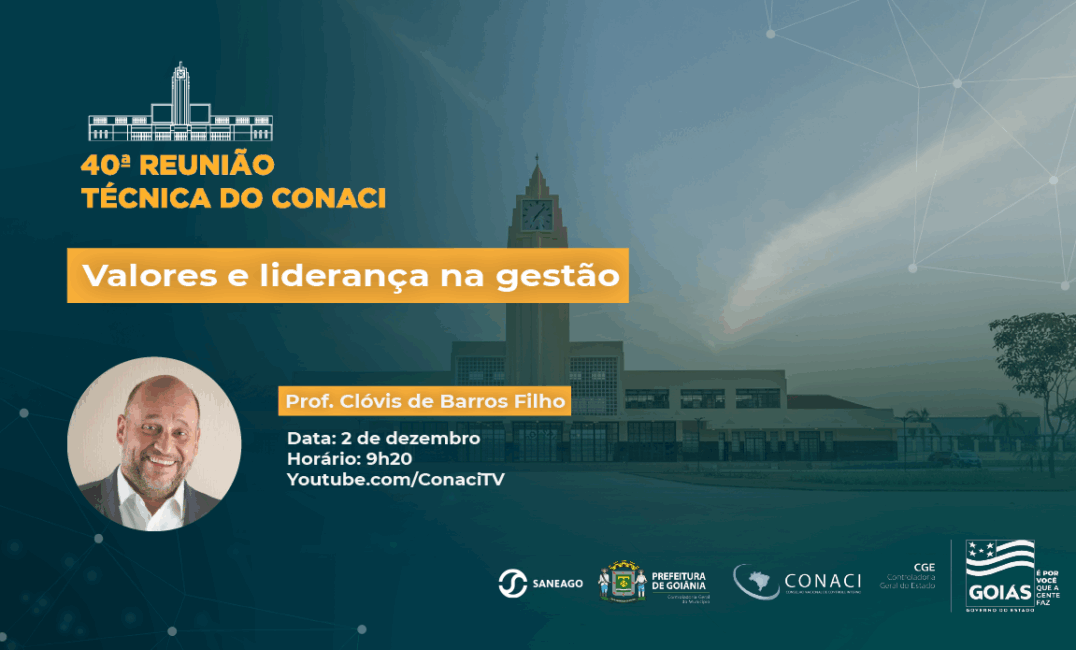 No dia 02 de dezembro, quinta-feira, às 09h20, vai acontecer a palestra de abertura da Reunião Técnica do Conaci, RTC, “Valores e Liderança na Gestão”, com o professor Clóvis de Barros Filho. Pela primeira vez em 40 edições, o Conselho vai transmitir, ao vivo, no Conaci TV, canal do órgão no YouTube, a palestra de abertura para todo público que desejar acompanhar.