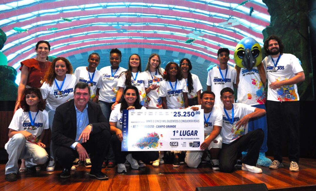 A semana está sendo finalizada com um sabor especial de vitória. Das cem escolas inscritas na edição 2024 do projeto Estudantes no Controle – iniciativa da Controladoria-Geral do Estado de Mato Grosso do Sul (CGE-MS) em parceria com a Secretaria de Estado de Educação (SED) – 15 foram premiadas na última quarta-feira (11). A cerimônia, que contou com a presença do governador do Estado, Eduardo Riedel, e da primeira-dama, Mônica Riedel, foi realizada no auditório do Bioparque Pantanal.