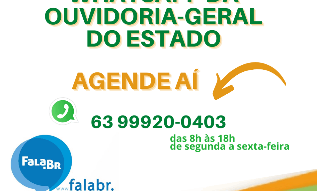 O atendimento da Ouvidoria-Geral do Estado (OGE) pelo WhatsApp acontece das 8h às 18h, de segunda a sexta-feira. Além disso, os cidadãos e as cidadãs contam também com o telefone gratuito 162, que está disponível exclusivamente para ligações efetuadas no Estado do Tocantins.