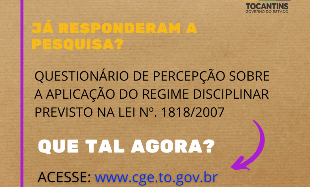 O prazo para responder à pesquisa de percepção sobre a aplicação do regime disciplinar previsto no Estatuto dos Servidores Públicos Civis do Estado do Tocantins (Lei nº 1.818/2007) foi prorrogado até o próximo dia 7 de dezembro.