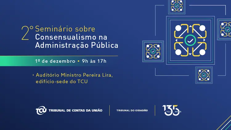 Estão abertas as inscrições para o 2º Seminário sobre Consensualismo na Administração Pública, sob promoção do Tribunal de Contas da União (TCU). O evento será realizado no dia 1º de dezembro, das 9h às 17h, no Auditório Ministro Pereira Lira, situado no edifício sede do Tribunal, em Brasília (DF).