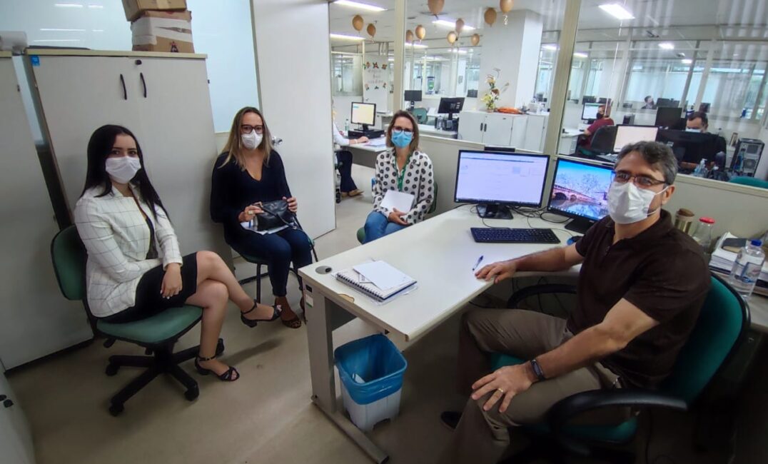 O ouvidor-geral do Estado de Goiás, que também é superintendente de Participação Cidadã da Controladoria-Geral do Estado (CGE), Danilo Carvalho, e a gerente de Ouvidoria do órgão, Alessandra Lessa, se reuniram com a ouvidora-geral de Goiânia, Isabela Soares Vicheti e com a gestora de Transparência, Dayanne Arruda, que compõem a equipe da Controladoria-Geral do Município.