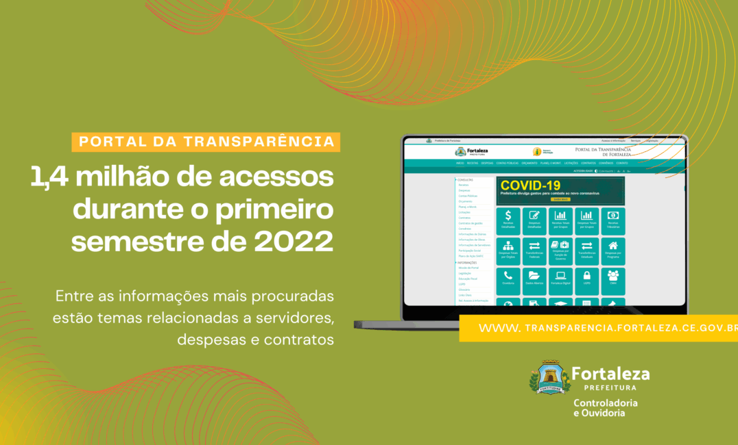 O Portal da Transparência registrou mais de 1,4 milhão de acessos durante o primeiro semestre de 2022. A plataforma da Prefeitura de Fortaleza, gerenciada pela Controladoria e Ouvidoria Geral do Município (CGM), oferece consultas relativas à administração municipal, como execução orçamentária e financeira, receitas, despesas, contratos e convênios além de informações sobre os servidores. A página fornece suporte e fortalece as políticas de transparência implementadas na Capital, assegurando ao cidadão o acompanhamento de como está sendo aplicado e utilizado os recursos públicos.