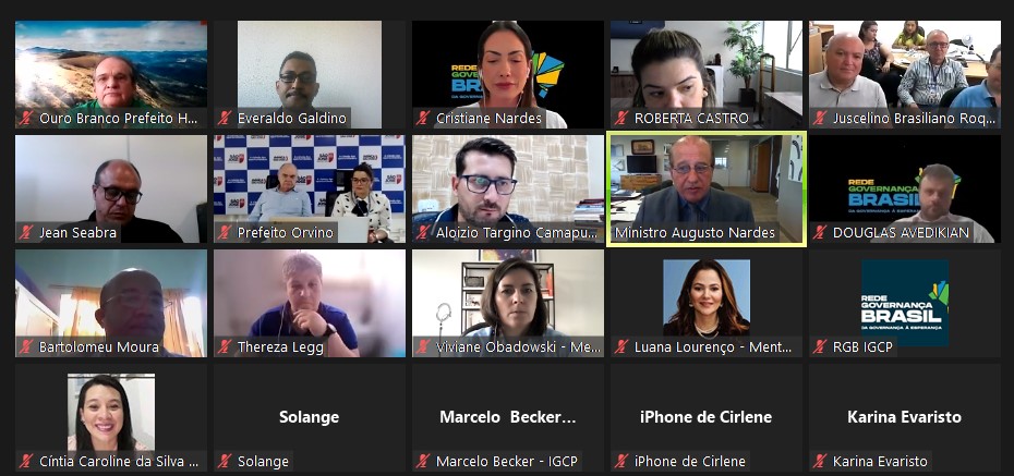 A Rede Governança Brasil (RGB) realizou na tarde de ontem (13.09) o primeiro encontro virtual da 2ª Turma de Mentoria para Prefeitos, formada por chefes do Poder Executivo e assessores de cinco cidades selecionadas: São José (SC), Camapuã (SC), Palmeirópolis (TO), Diamantina (MG) e Ouro Branco (MG).