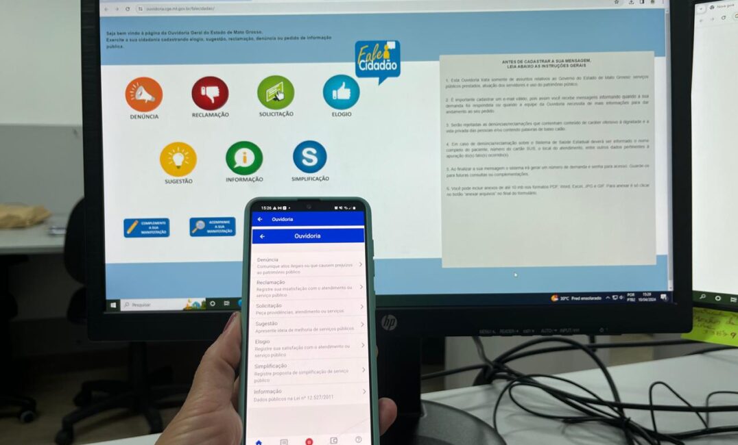Além do aplicativo MT Cidadão, a Ouvidoria Geral do Estado de Mato Grosso atende por meio do site www.ouvidoria.mt.gov.br, whatsapp (65) 98476-6548 e o telefone 08000 6471520 ou 162.