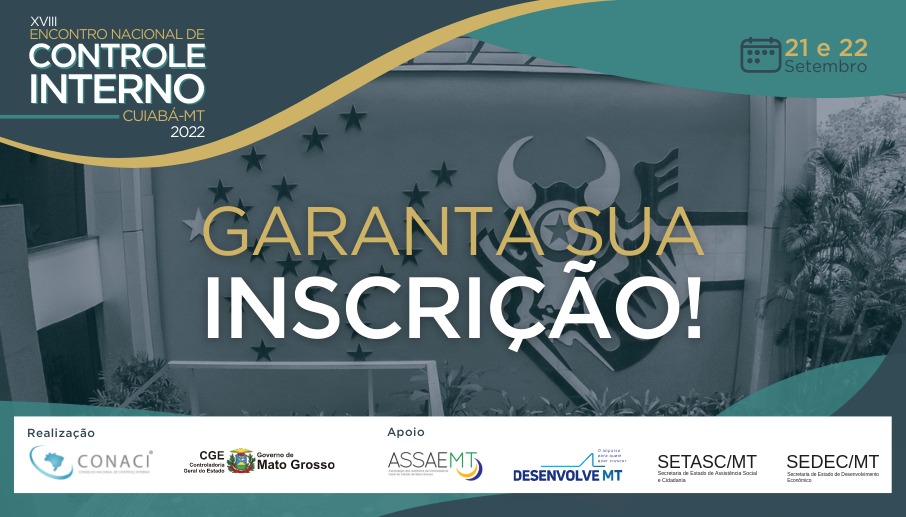 Participe do evento voltado à discussão do Controle Interno e que visa contribuir com pautas atuais para sociedade brasileira. O XVIII Encontro Nacional de Controle Interno vai acontecer na próxima semana, nos dias 21 e 22 de setembro, em Cuiabá, com transmissão ao vivo no Conaci TV. As inscrições estão abertas para a participação online. Inscreva-se: https://doity.com.br/xviii-encontro-nacional-de-controle-interno–cuiabamt