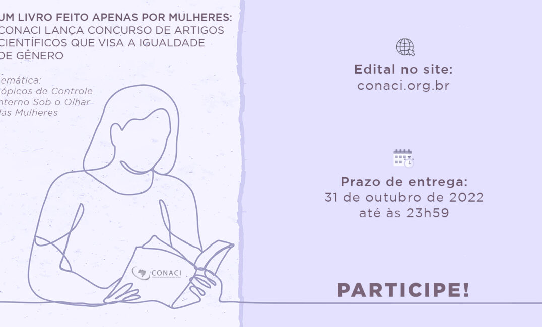 O Conselho Nacional de Controle Interno (Conaci) publicou hoje, 22, o edital do concurso para submissão de artigos de mulheres para o novo livro do órgão. A temática é “Tópicos de Controle Interno Sob o Olhar das Mulheres” e terá prazo para entrega até o dia 31 de outubro. A obra tem foco na iniciativa “Mulheres no Controle”, com o objetivo de estimular a participação feminina na pesquisa, produção acadêmica, difusão do conhecimento e sua aplicação na realidade brasileira.